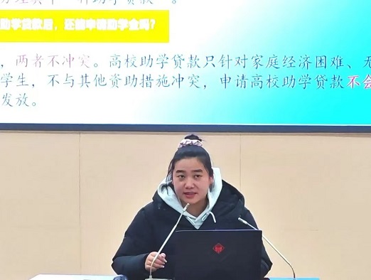 学院资助工作专员李艳飞在宣讲会上明确强调,学院始终坚持以学生为本,高度重视学生资助工作,不断完善资助体系,拓宽资助渠道,努力为家庭经济困难学生提供全方位、多层次的资助服务。她勉励同学们们要树立远大理想,珍惜学习机会,自强不息,刻苦学习,以优异的成绩回报社会。