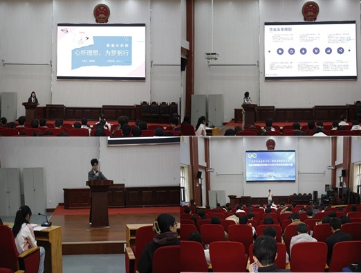 于龙子湖校区繁塔楼模拟法庭开展“青春筑梦志在四方,规划启航职引未来”职业规划大赛初赛,院团委副书记李艳飞老师主持并担任评委,22、23级部分学生代表观赛。