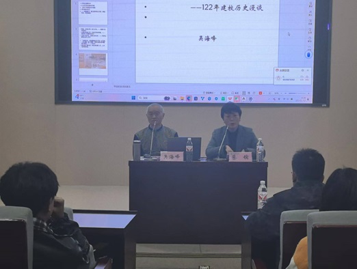 于文化路校区300人报告厅召开“薪火•弘农—说说122年校史”成长成才报告会,本次活动特邀河南农业大学原图书馆馆长、正高级研究馆员吴海峰为主讲嘉宾。本次报告会由院党委副书记蔡镔主持,2024级新生辅导员张枫及2024级全体新生参加。