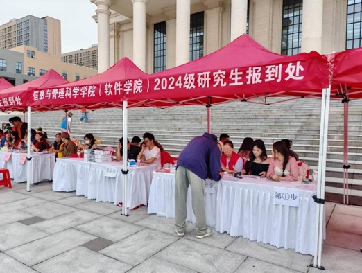 迎新现场,志愿者们以饱满的热情和认真的态度接待每一位新生,为新生们留下了美好的入学回忆。新生们在志愿者的引导下完成报到、领取新生礼物,并拍照留念,记录下作为信管新生的“独家记忆”。