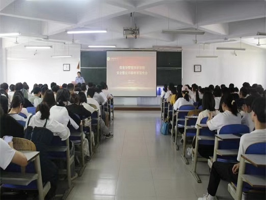 特邀郑州市金水分局东风路派出所尹岩岩警官于桃李园桃西楼604开展防诈反诈教育科普讲座。院党委副书记蔡镔、团委老师及 2023级全体学生参加。