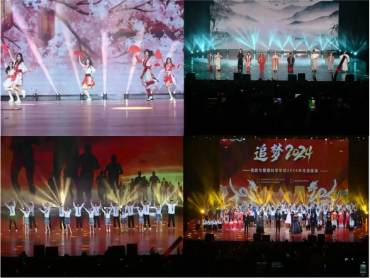 于龙子湖校区英林讲堂举办“追梦2024”元旦晚会,学院师生欢聚一堂,共同欣赏这场异彩纷呈的视觉盛宴。