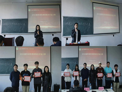 于桃李园学生公寓桃西楼201举办2022级军训优秀班集体评选大赛。团委老师及军训教官代表出席活动并担任评委。