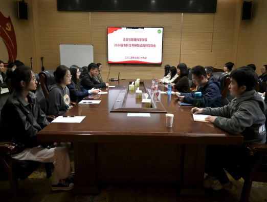 于龙子湖校区教学楼A405召开2024届本科生考研复试调剂指导会,本次会议特邀管理科学系主任董奋义教授、计算机科学与技术系郭伟教授为同学们传经送宝。指导会由院团委副书记郭潇主持。