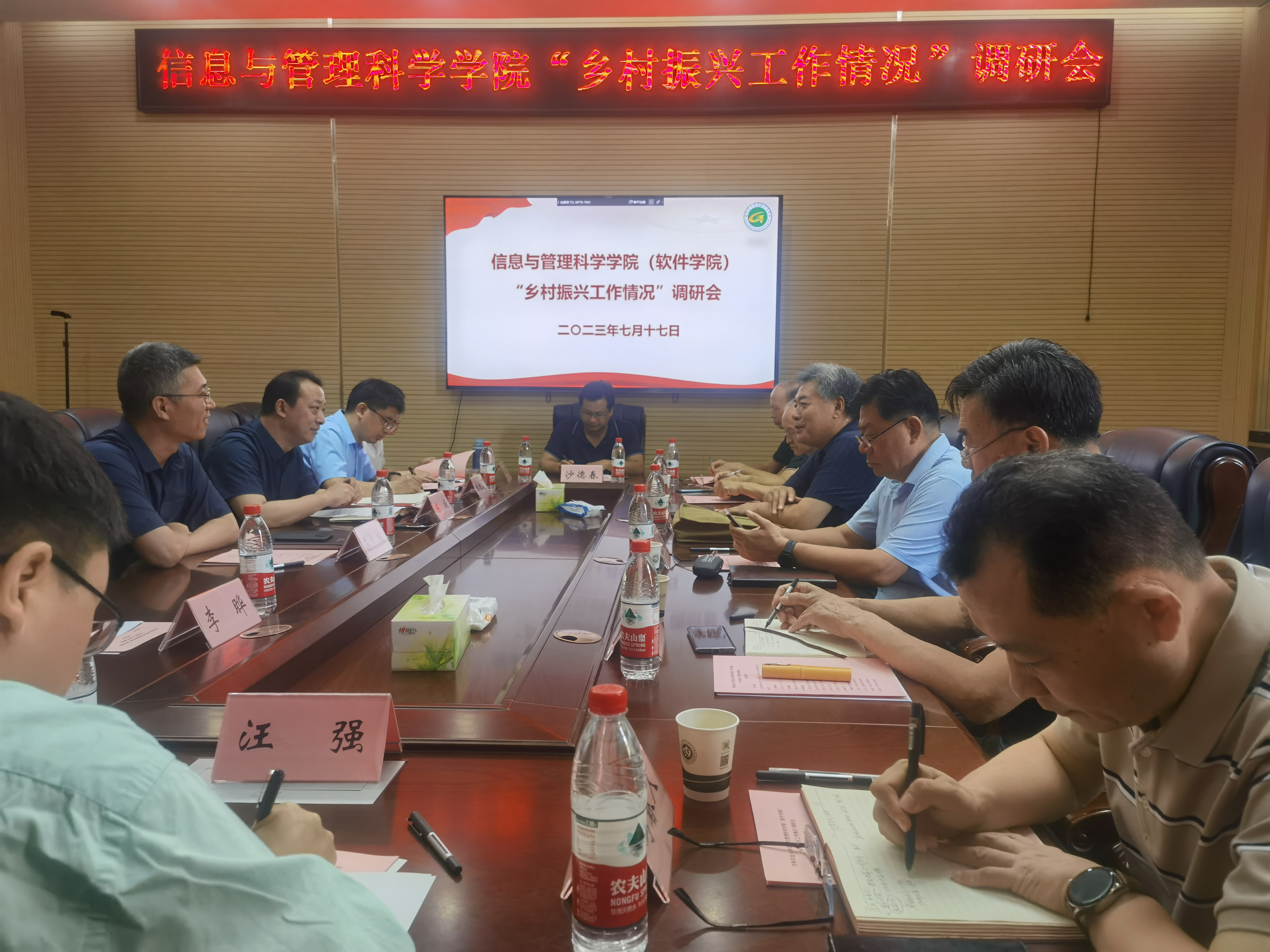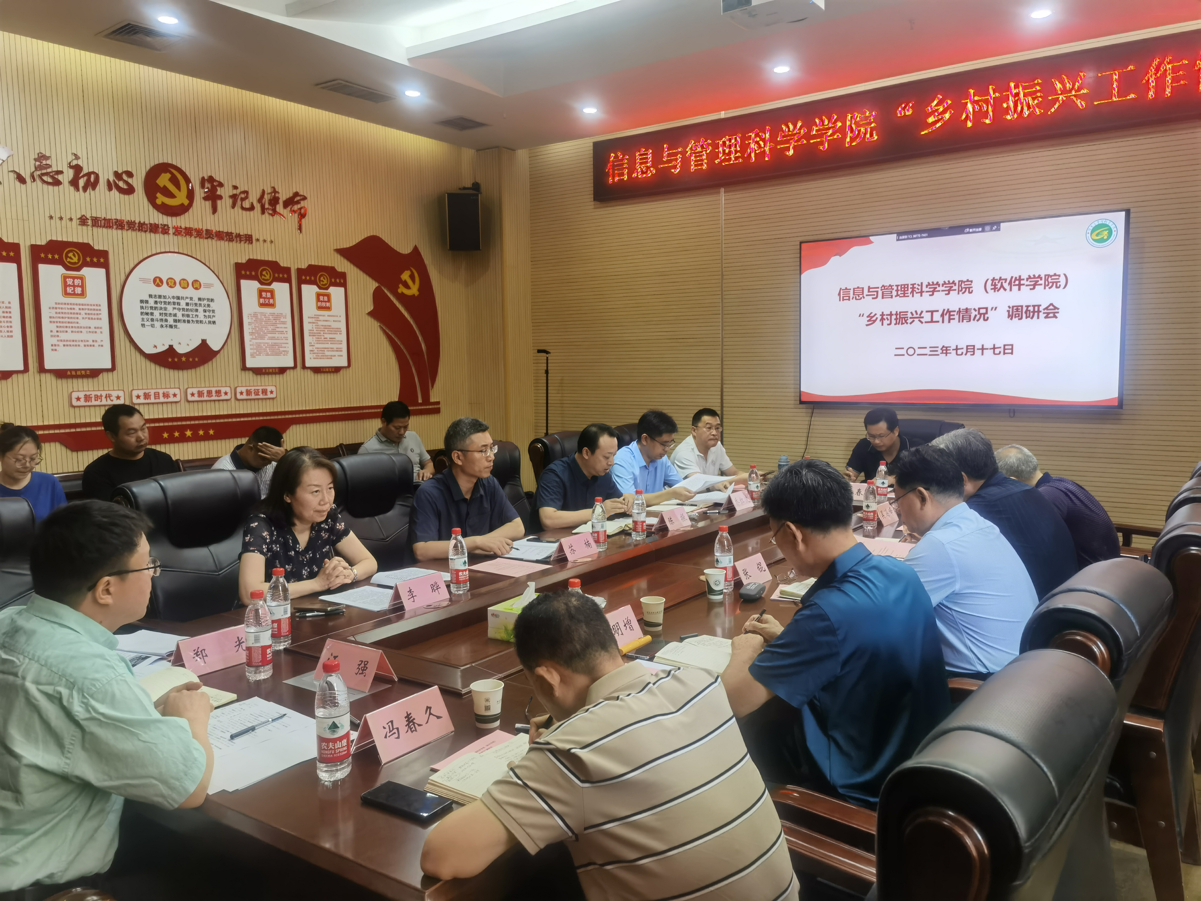 服务乡村振兴的工作情况并对学院中原农村信息港、大数据双创基地、测土配方施肥系统在服务三农中所起到的支撑作用进行了重点的汇报。院党委书记苏楠结合学院学生社会服务开展情况,重点介绍了电脑120等学院学生社团在乡村振兴工作中取得成绩。