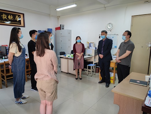 本网讯(通讯员 郭潇)5月4日上午,学院党委书记马新明、院长陈振、党委副书记张利军、副院长户小英深入学院中心实验室、院团委、学生宿舍检查疫情期间学院教学、学生管理等工作,看望慰问教师和工作人员。