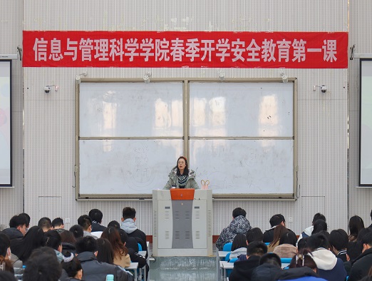 本网讯(通讯员 郭潇 黎逸帆)2月25日,学院于龙子湖校区教学楼大教室4开展了春季开学安全教育第一课暨2019级年级会活动,2019级全体同学分专业、分批次参加会议。本次会议由院团委书记、2019级辅导员老师张玥主持。