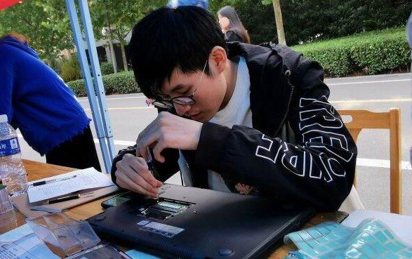 活动现场,电脑120成员分工明确、各负其责,开展电脑系统重装、灰尘清理、安全检测、磁盘扩充、数据恢复及软件使用等服务。在清理电脑灰尘时,对于不同型号的笔记本电脑,他们认真观看相关视频,用专业的工具对笔记本电脑进行拆卸、清灰,完成任务后将电脑恢复原样,并开机查看电脑是否运行正常。遇到难题,电脑120成员会集思广益、共同协商。他们扎实的维修技术和热忱的服务赢得了同学们的广泛好评。