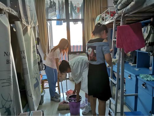 该活动共分为“共同观看“返校复学第一课”视频”、“召开“教育教学和疫情防控”主题班会”、“开展“卫生扫除,共同防疫”劳动教育活动”三个部分。首先,团委老师组织学生代表于教学楼B309观看由省教育厅统一录制的全省高校“返校复学第一课”视频,其他学生于宿舍中在线观看了该视频。视频包括政治引领、科学普及、防护讲解、法治教育、心理疏导5个方面内容。之后,各班班主任组织召开“教育教学和疫情防控”主题班会。会议上,各班班主任带领同学们学习《河南农业大学关于做好 2020 年秋季学期教育教学和疫情防控工作的通知》,使学生们了解了学校关于疫情防控、教育教学和日常活动等的管理相关规定。最后,全院同学共同开展宿舍大扫除活动。劳动教育活动的开展,为同学们普及了卫生防疫知识,增强了大家的健康防护的意识,进一步引导学生形成正确的劳动实践观、价值观和教育观。同时使全体同学增强了时刻保持宿舍卫生整洁的意识,为学生的学习和生活创造良好舒适的环境。