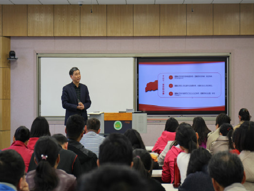 宣讲、调研经过,全体教职工共同观看了《河南新闻联播》王国生到河南农业大学宣讲党的十九届四中全会精神、与师生座谈的视频。王红艳领学了《河南日报》刊发《王国生到河南农业大学宣讲党的十九届四中全会精神》新闻,传达了省委书记王国生与师生座谈时的讲话精神。随后,她从“审议一个重磅文件、对一系列重大活动的评价、一个重要判断、显著优势、一个总体目标、战略任务、人事调整”七大模块向大家解读了党的十九届四中全会内容,同时希望大家认真领会校党委书记魏蒙关就进一步学习宣传贯彻落实党的十九届四中全会精神和王国生书记座谈会讲话精神提出的六点要求:加强学习宣传上下功夫、提高政治站位上下功夫、提升工作能力上下功夫、全面加强党的建设上下功夫、选树先进典型上下功夫、贯彻落实上下功夫,高标准推进“不忘初心、牢记使命”主题教育活动。会上,院长马新明向教职工强调了贯彻落实省委书记王国生讲话精神的重要性,要求大家坚持立德树人根本任务,做好本职工作,明确目标、增强责任感,以实际行动践行初心与使命。