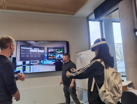 计算机与数据科学系Stuart Charters博士以“智能科技赋能现代农业”为题,作专题报告,系统介绍了从智能运动监测传感器技术,到机器学习驱动的牧场管理、深度学习优化的精准种植方案等前沿应用。随后,研学团成员在VR实验室。